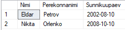 PRIMARY KEY (Nimi, Perekonnanimi, Sunnikuupaev)