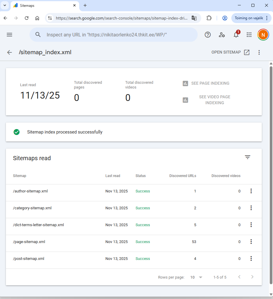 3. XML sitemap – xml fail, kus kohas on kirjutatud kõik wp lehet, postid, sõnastikud, kategooriad ja nii edasi.