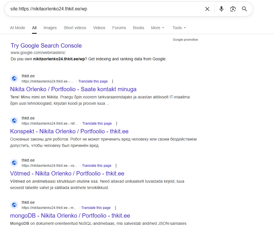 Mis tähendab, et leht on indekseeritud? – otsingumootorid, näiteks Google on lisanud teie lehe info oma andmebaasi