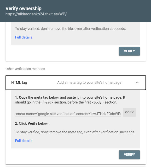 - SEO plugini seadistused, kasutame verifitseerimiseks Google Search Konsooli: