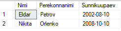 PRIMARY KEY (Nimi, Perekonnanimi, Sunnikuupaev)